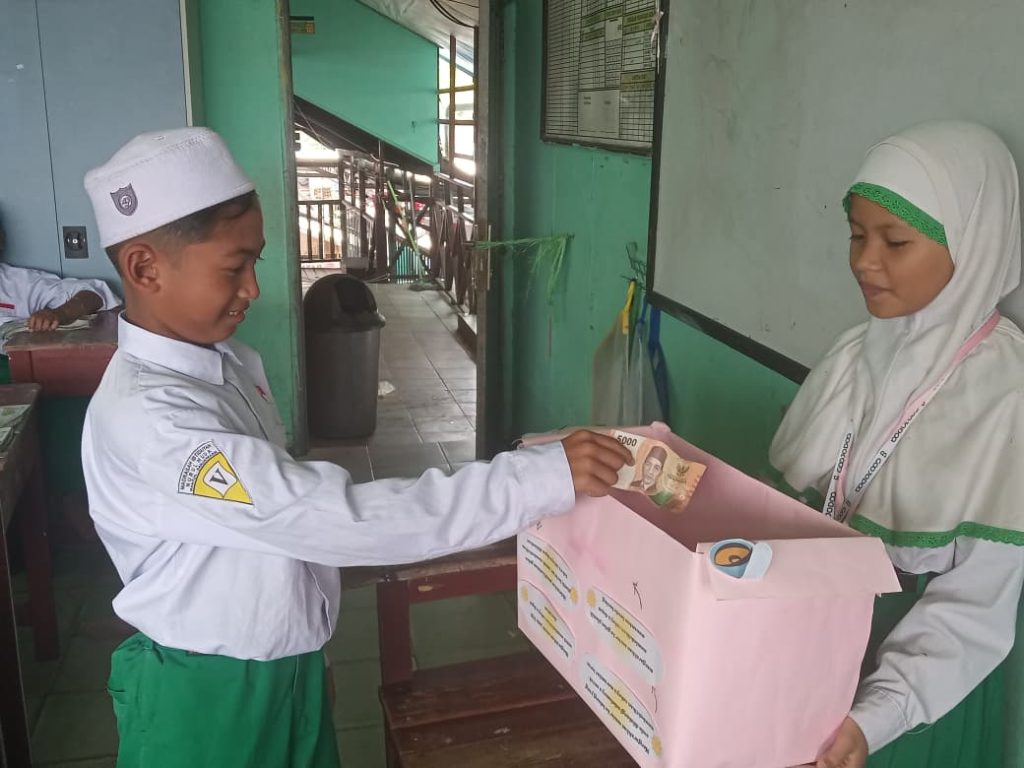 Siswa-siswi Kelas 5A dengan antusias mengumpulkan sumbangan sukarela yang nantinya akan diinfakkan ke masjid terdekat. Kegiatan ini tidak hanya bertujuan untuk membantu orang lain yang membutuhkan, tetapi juga untuk membentuk karakter siswa yang lebih peduli dan berempati terhadap sesama.