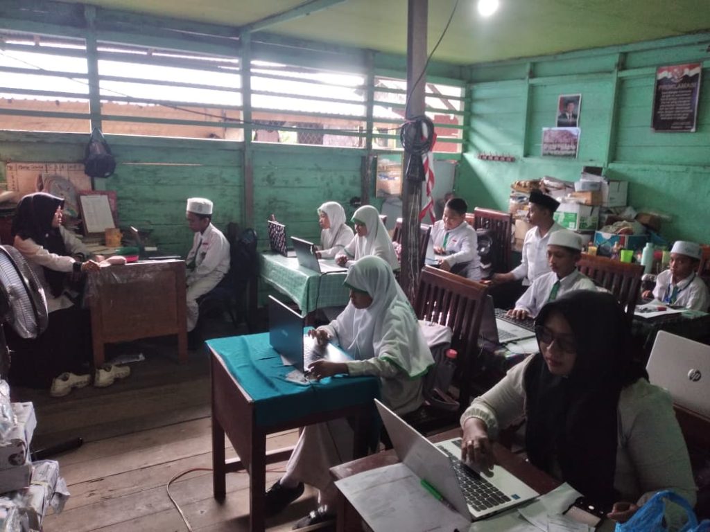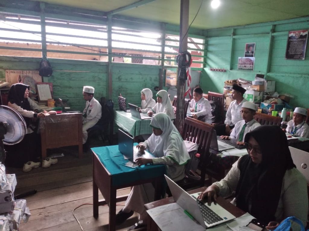 Banjarmasin- 08 September 2025, Dalam rangka mempersiapkan Asesmen Nasional Berbasis Komputer (ANBK) 2025, siswa kelas 5 Madrasah Ibtidaiyah (MI) Nurul Huda Mantuil melaksanakan gladi atau simulasi ANBK. Kegiatan ini bertujuan untuk membiasakan siswa dengan sistem dan format asesmen yang akan mereka ikuti nantinya.