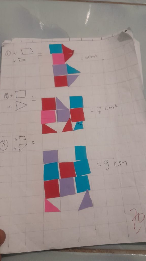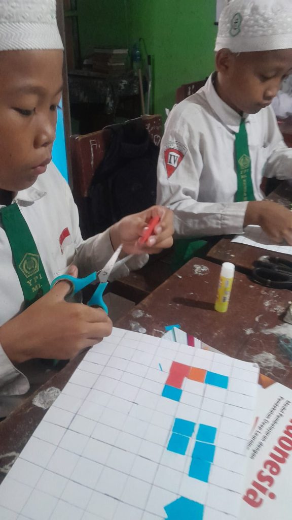 Selama proses belajar, para siswa nampak antusias mengikuti setiap tahapan, mulai dari memastikan presisi garis hingga menempelkan bentuk-bentuk geometris pada media yang disediakan. Pendekatan ini dinilai efektif dalam menumbuhkan rasa percaya diri siswa, karena mereka dapat melihat langsung hasil penghitungan luas melalui bentuk fisik yang mereka buat sendiri.