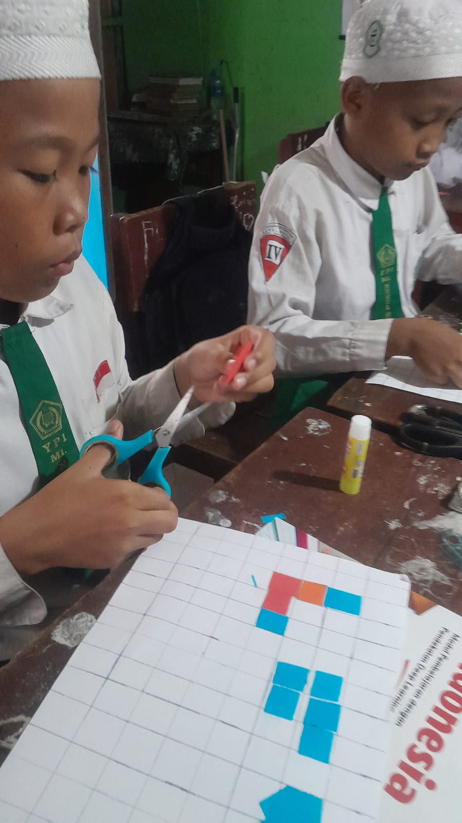 Siswa-siswi kelas 4B MIS Nurul Huda Mantuil mengikuti kegiatan pembelajaran matematika yang inovatif dengan menerapkan metode praktik langsung di ruang kelas pada Rabu (7/1). Melalui aktivitas mengukur, menggaris, menggunting, dan menempel, para siswa diajak untuk memahami konsep dasar bangun datar dan luas secara konkret dan aplikatif.