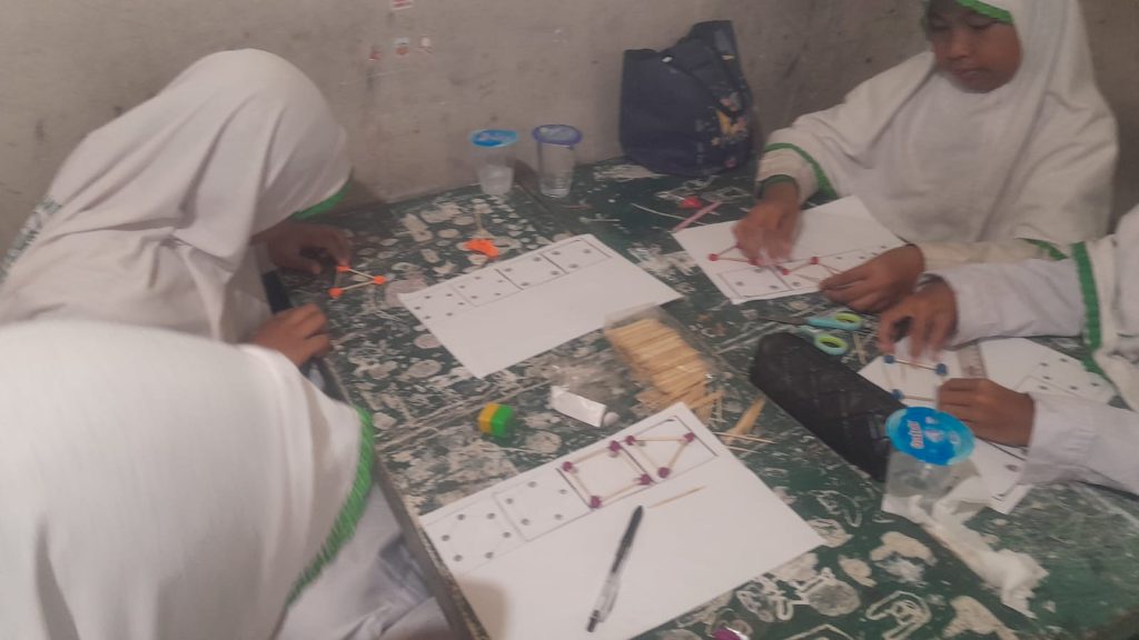 Dalam praktiknya, para siswa menggunakan tusuk gigi sebagai representasi dari sisi-sisi bangun datar yang memiliki sifat konsisten (lurus dan sama panjang). Sementara itu, bulatan kecil plastisin digunakan sebagai titik sudut, sekaligus berfungsi sebagai perekat atau konektor antar-sisi. Dengan metode ini, siswa dapat melihat secara nyata bagaimana pertemuan dua garis (sisi) membentuk sebuah ruang lancip yang disebut sudut.